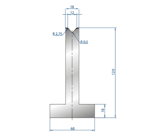 Матрица предназначена для гибки деталей различной формы из листового металла. Ее изготавливают из инструментальной стали, а рабочие поверхности закалены методом индукционной закалки. Инструмент выполнен с повышенной точностью и подвергнут шлифованию. Ширина раскрытия матрицы, ее угол и максимальная нагрузка выбираются в зависимости от параметров изделий, которые необходимо получать.