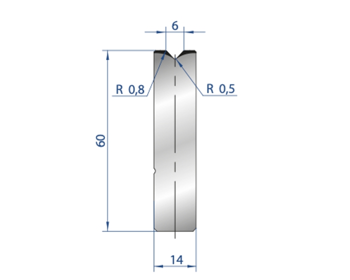 Матрица предназначена для гибки деталей различной формы из листового металла. Ее изготавливают из инструментальной стали, а рабочие поверхности закалены методом индукционной закалки. Инструмент выполнен с повышенной точностью и подвергнут шлифованию. Ширина раскрытия матрицы, ее угол и максимальная нагрузка выбираются в зависимости от параметров изделий, которые необходимо получать.