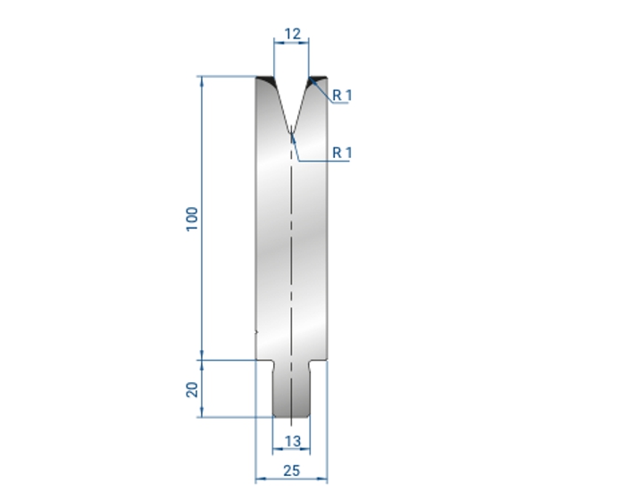Матрица предназначена для гибки деталей различной формы из листового металла. Ее изготавливают из инструментальной стали, а рабочие поверхности закалены методом индукционной закалки. Инструмент выполнен с повышенной точностью и подвергнут шлифованию. Ширина раскрытия матрицы, ее угол и максимальная нагрузка выбираются в зависимости от параметров изделий, которые необходимо получать.